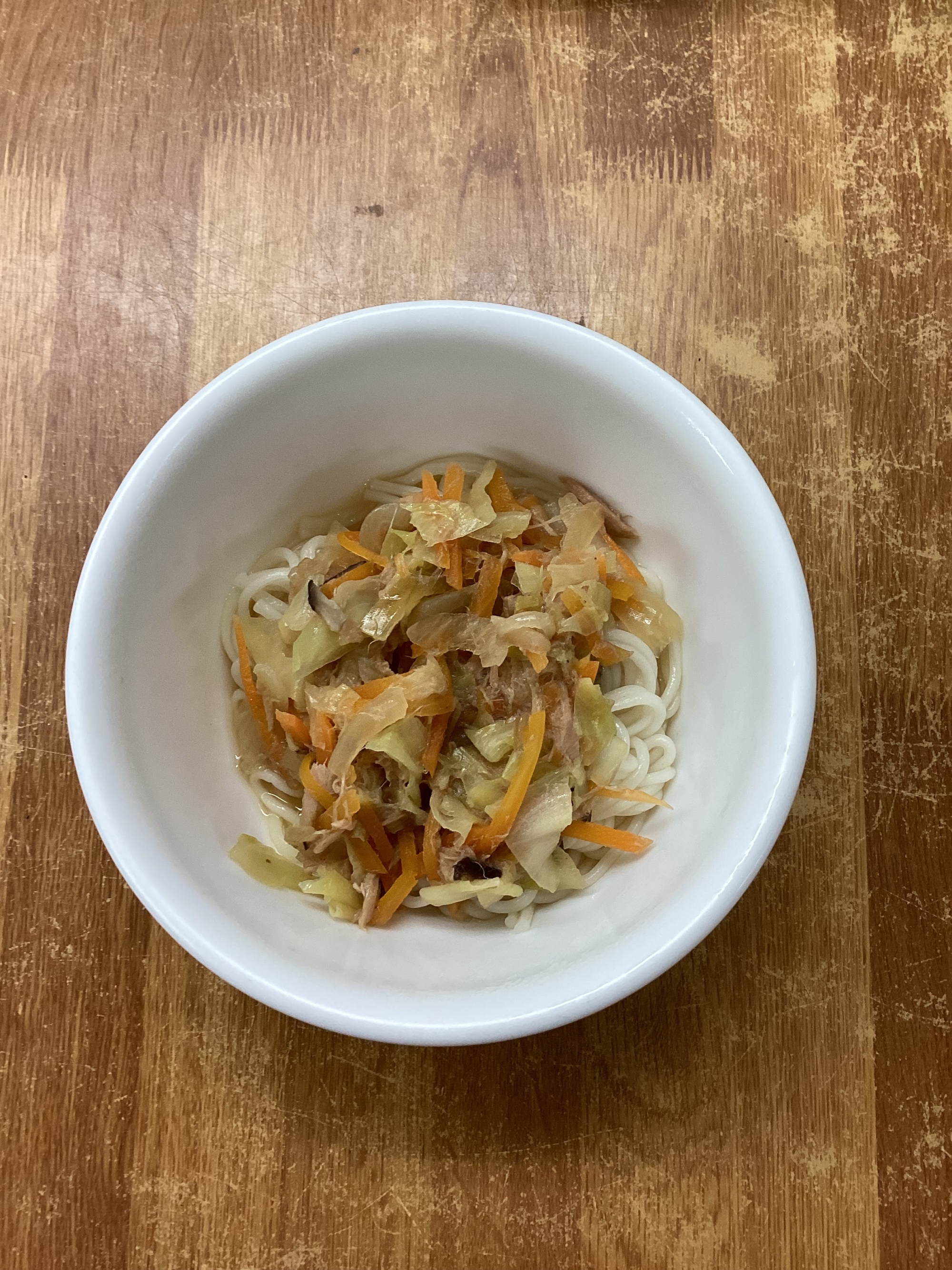 沖縄の「そうめんチャンプルー」に似ていますが、奄美地域の「油ぞーめん」は、炒める時にだし汁を入れるのが特徴です。